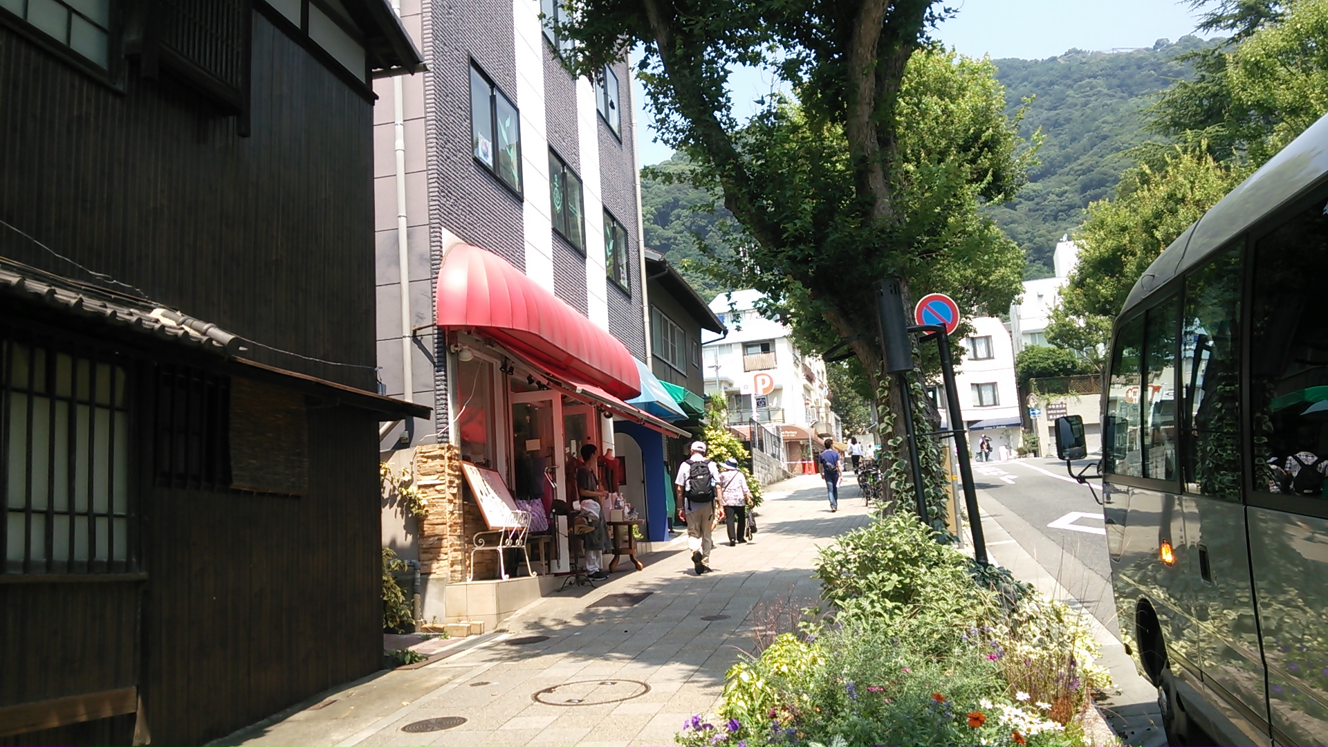 写ってますが道の真ん中で座り込んでるオッサンがいたり、写真撮ろうとしてる私の前から頑として動こうとしない親子連れがいたり、なんか無駄にストレスが溜まりましたが……まあ、気を取り直して、お昼ご飯を食べ、バス停に戻ります。
