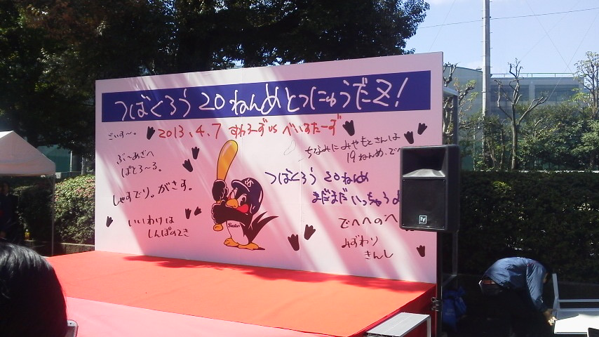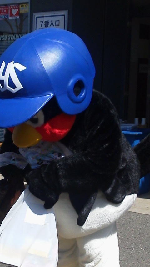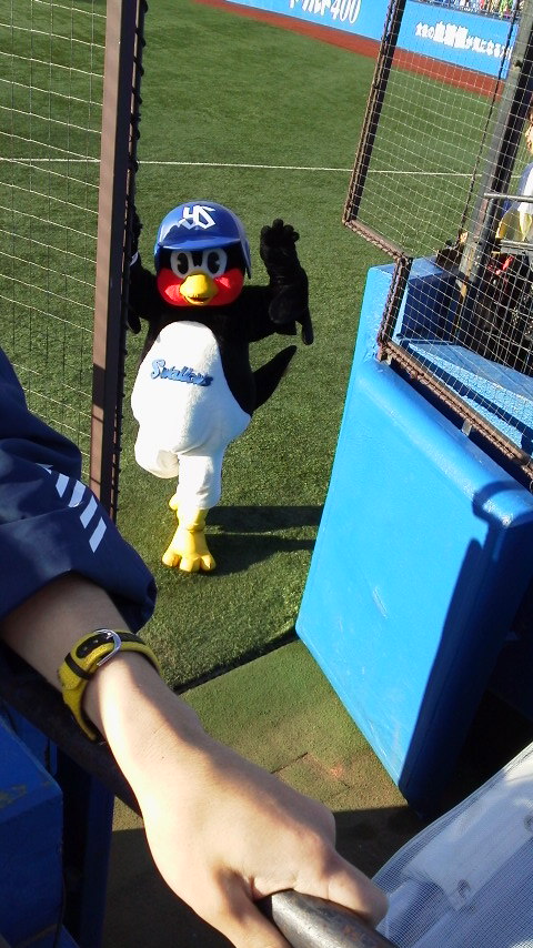 最後には応援団から「こっちを向いて、つば九郎! こっちを向いて、つば九郎!」とコールされてビックリしてましたがw