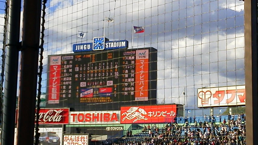 雨は降るし、試合には負けるし、おまけに試合後のイベントも中止になるしで、まあ、あんまいいことは無かった感じでしたけど、久々の神宮を堪能しました。