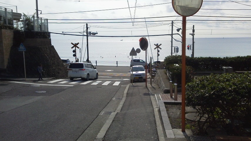 で、鎌倉高校前駅手前の道を北に入り、振り返りながらパチリ。