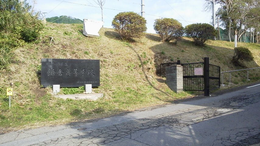 更に坂を上れば、鎌倉高校の正門が見えてきます。