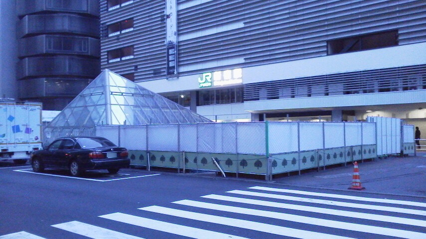 摩耶ルートで訪れる、東京の背景。モチーフになっているのは、新宿駅東側のルミネエストとその傍の四角錐形の……なんかよくわかんない構造物ですw