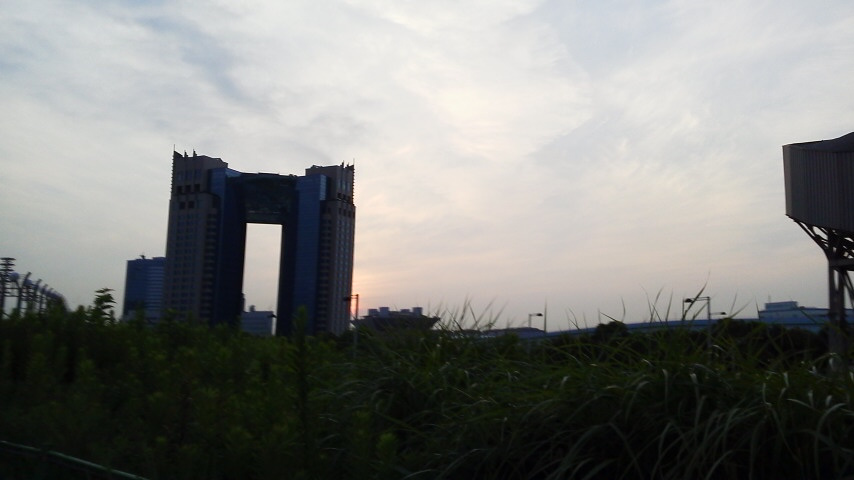 東京テレポートの近くから撮影しましたが、そろそろ日が昇ってきてます。