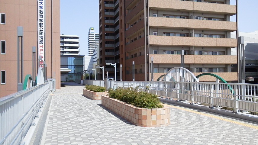 駅から北西の方角。見てもらえば分かるとおり、左の建物は某大学です。
