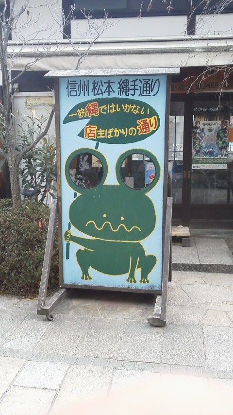 松本到着時点で既に正午を回っていたので、次の目的地に向けて通りを西に向かいながら手ごろな飲食店を探していたのですが、今一つ私のアンテナに引っかかる電波を発してる店は見つからず、代わりにちょっと無理がありそうな江戸川君とか、写真を撮るのを憚られるバイク用品(?)店とかばかりが目に入ってきました。