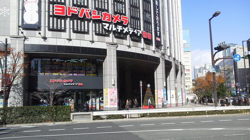 場所はまあ言うまでもないかもしれませんけど(w)、ヨドバシカメラです。JR大阪駅と阪急梅田駅を結ぶ歩道橋の下、JR側から撮影しました。