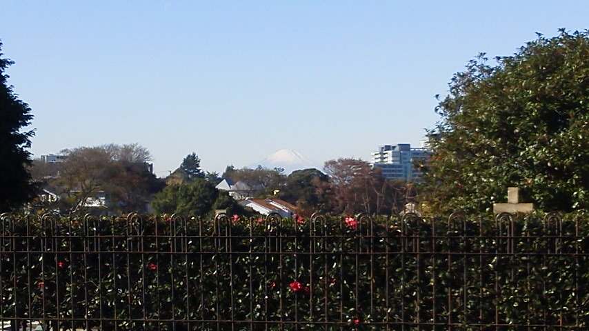 なんか数人の若者が騒いでるなと思ったら、墓地越しに富士山が見えてたみたい。