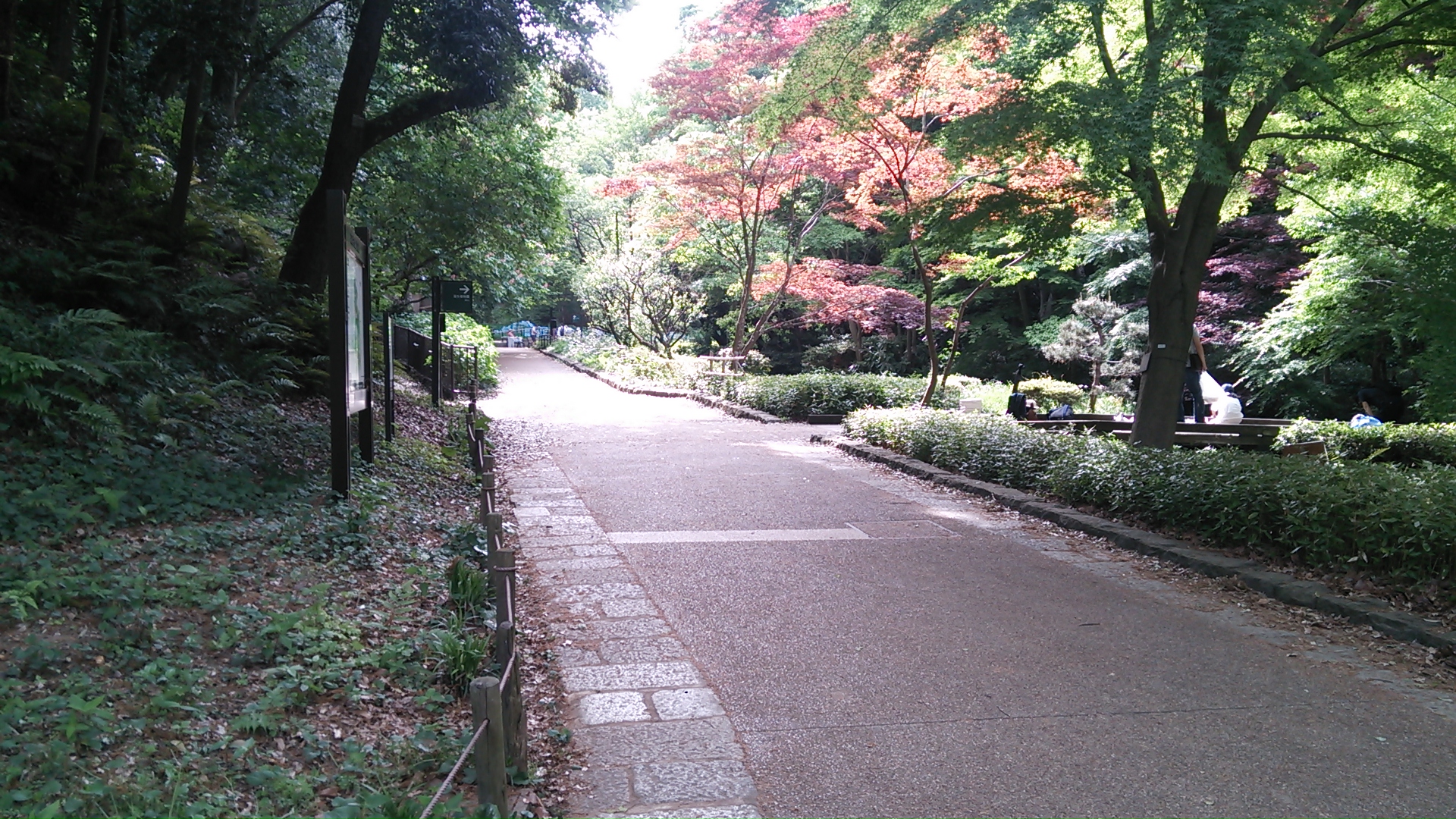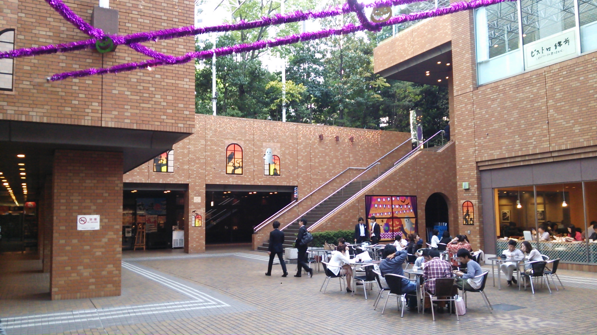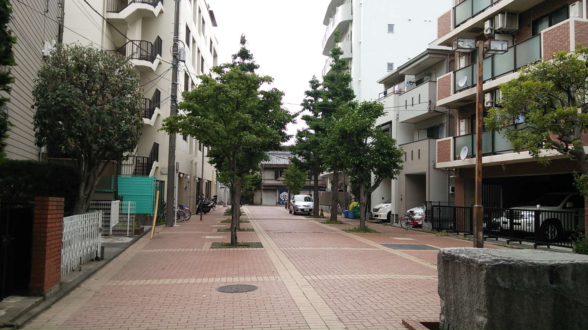 上の地図でいうと右の方のけやき広場から、あきくさ広場に繋がる道にて。