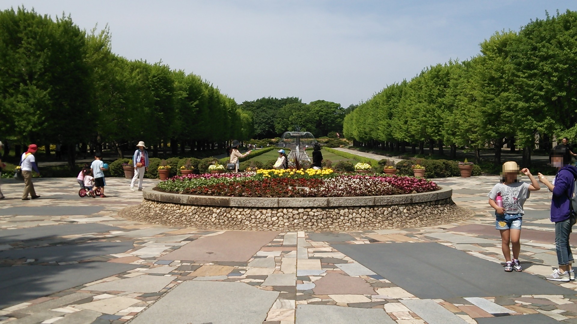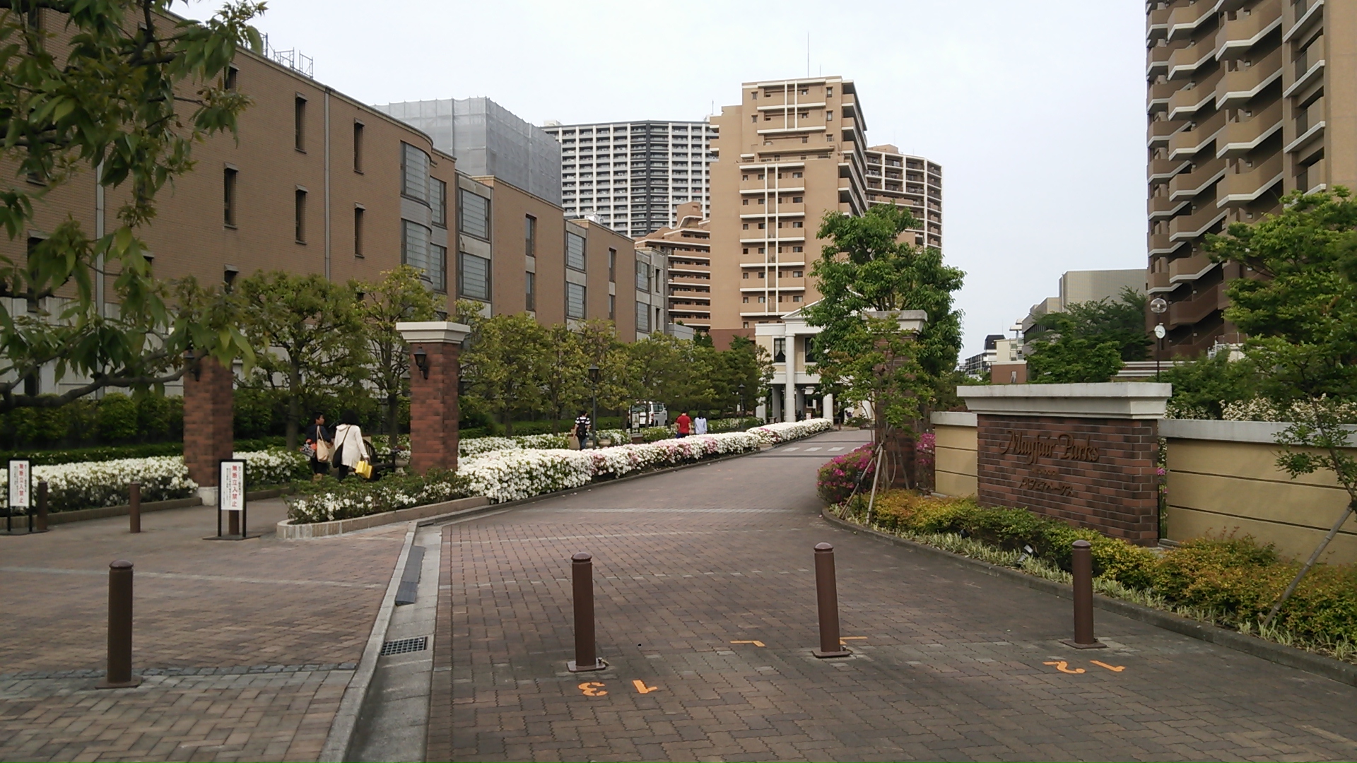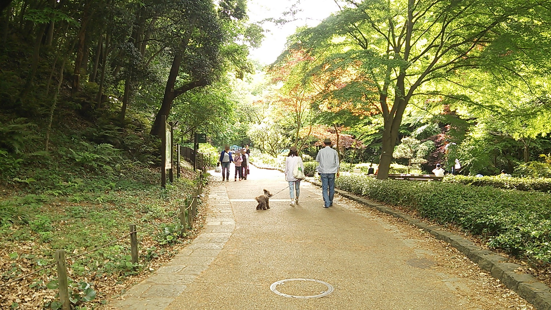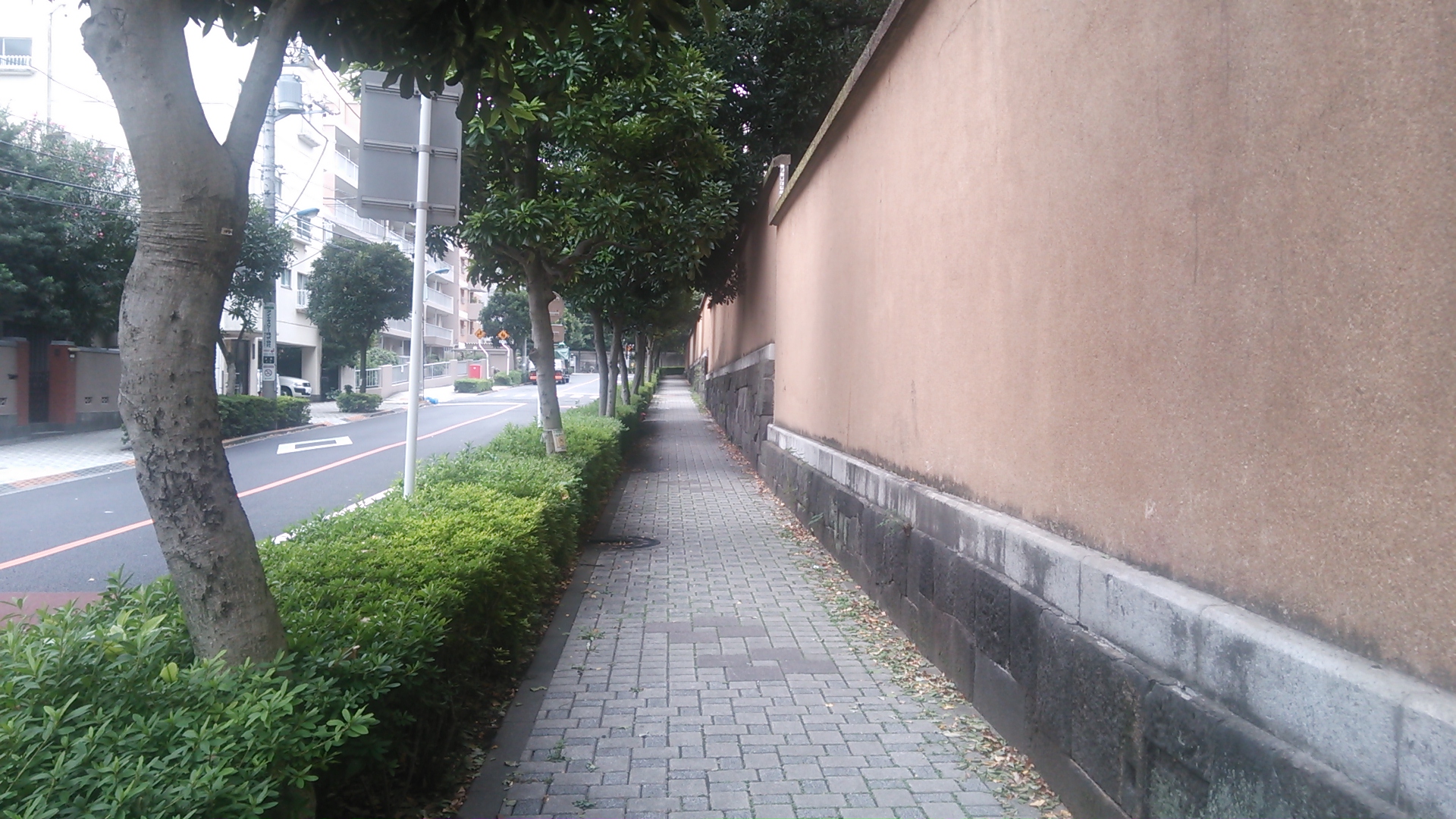上の地図でいうと右の方のけやき広場から、あきくさ広場に繋がる道にて。