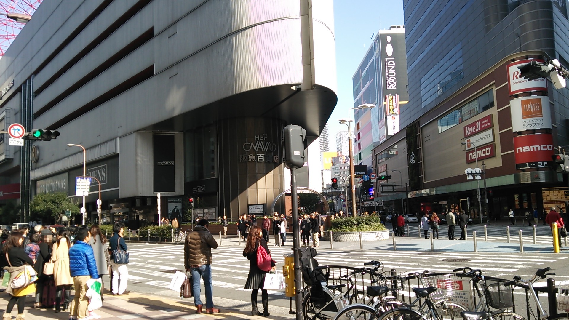 モノレールからJRに向かい、駅の北口が背景になっています。