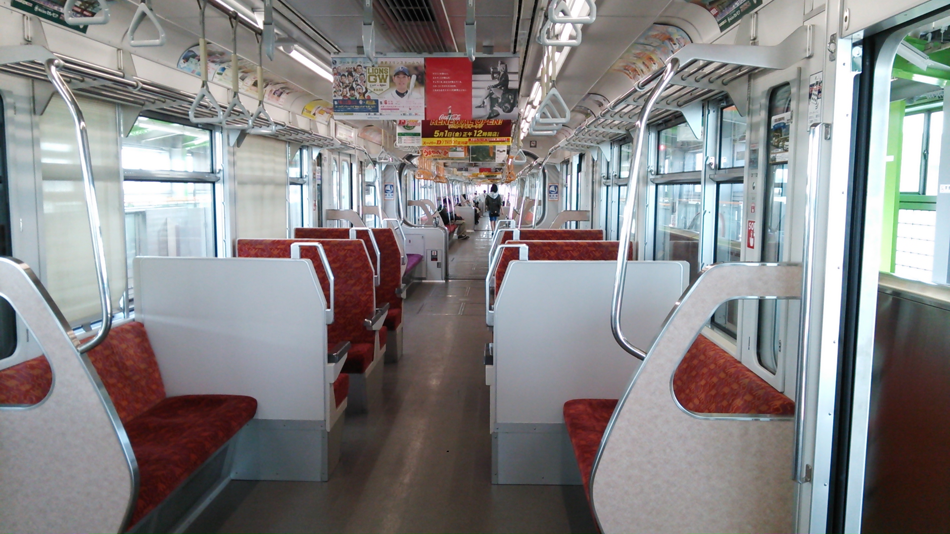 ちなみに、多摩モノレールの車両って、座席の種類が複数あって、写真のようなセミクロスシートの車両が来てくれるまで、2本ほど待ちました。
