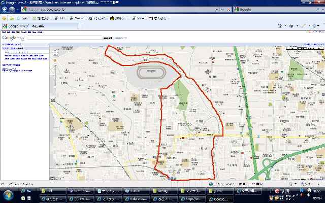 下の方に園田駅が見えるかと思いますが、そっから赤線を反時計回りです。