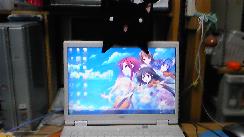 こないだの写真みたいに、ノーパのディスプレイ上が定位置になりつつあります。