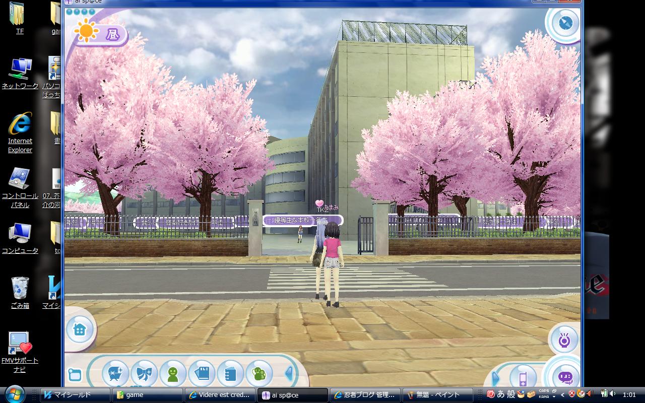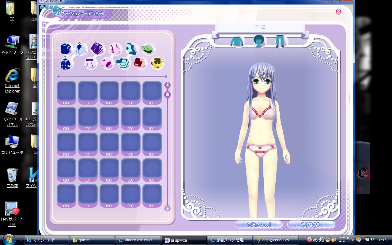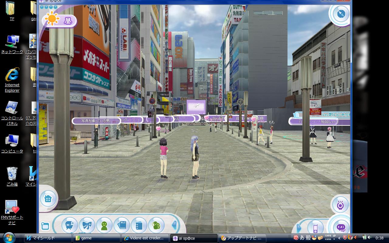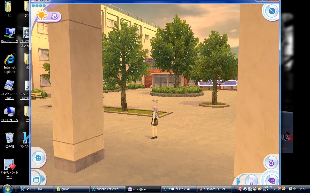 画面中央の「TKZ」ってのが私のアバター。まあ、わりと好みの女性キャラに設定したつもり。つっても、服が今一つ揃ってなくてですね……