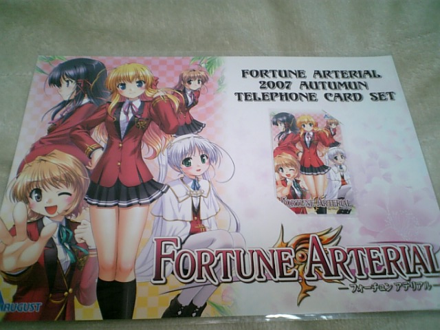 上から順に、オーガスト/ARIAイベントテレカ2007秋(通販キャンセル分)、同2008春、Fortune Arterialオリジナルサウンドトラック、です。