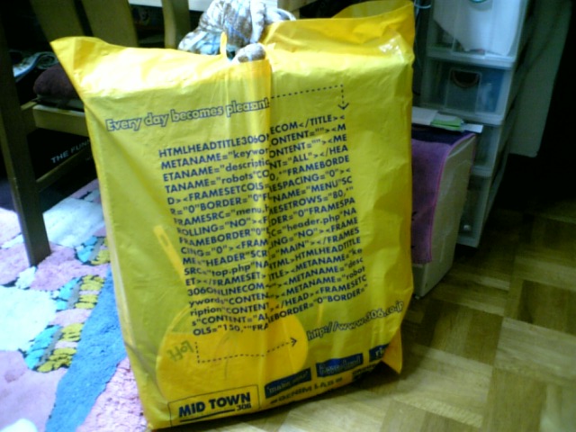 戦利品です。紙袋や服屋さんのビニール袋でカモフラージュしてますが、この中に戦利品全部入れてました。